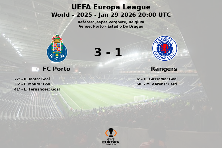 A partida terminou com uma vitória para o FC Porto, que soma três pontos importantes em sua busca por avançar na UEFA Europa League. O Rangers, apesar da derrota, mostrou um bom nível de jogo e deve continuar a trabalhar para melhorar nas próximas partidas. O árbitro da partida, Jasper Vergoote da Bélgica, mostrou um cartão amarelo para M. Aarons do Rangers. Quanto às estatísticas, o FC Porto fez 11 remates (3 no alvo e 6 fora do alvo) e 4 cantos, enquanto o Rangers fez 4 remates (2 no alvo e 1 fora do alvo) e 3 cantos. O FC Porto cometeu 15 faltas contra 13 do Rangers.