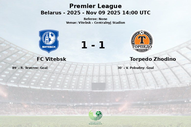 Vitebsk, Bielorrússia – Em um jogo disputado no Centralnyj Stadion, o FC Vitebsk e o Torpedo Zhodino empataram em partida da 28ª rodada da Premier League bielorrussa. O Torpedo Zhodino abriu o placar aos 30 minutos com um gol de V. Pobudey, assistido por I. Rutskiy. A partida seguiu com o time visitante na frente até os momentos finais, quando R. Teverov marcou para o FC Vitebsk aos 89 minutos, empatando o jogo. A partida, parte da temporada de 2025, deixou um sentimento agridoce para ambas as equipes, com o FC Vitebsk salvando um ponto em casa e o Torpedo Zhodino vendo a vitória escapar nos últimos instantes. As estatísticas refletiram um jogo equilibrado em posse de bola e chutes, sem cartões para nenhuma das equipes.