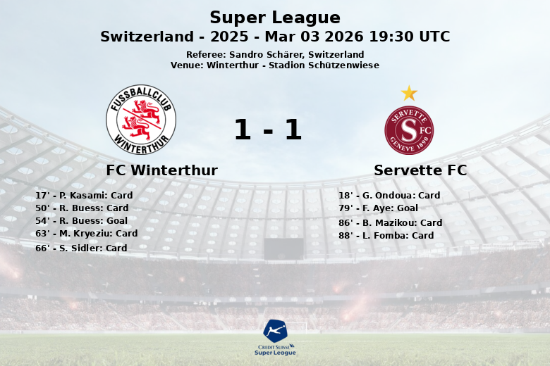 Winterthur, Suíça – Em um encontro carregado de emoções e controvérsias, o FC Winterthur e o Servette FC empataram em uma partida disputada no Stadion Schützenwiese. A partida, válida pela 28ª rodada da Super League suíça, foi marcada por um jogo físico e numerosos cartões.