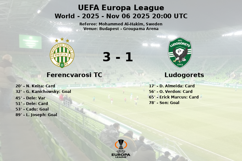 Budapeste, Hungria – Uma partida disputada na Groupama Arena viu o Ferencvarosi TC prevalecer sobre o Ludogorets em um encontro da UEFA Europa League. Apesar de Ludogorets ter uma ligeira vantagem na posse de bola (51%), o Ferencvarosi TC mostrou-se mais eficaz em frente ao gol, convertendo várias de suas oportunidades.