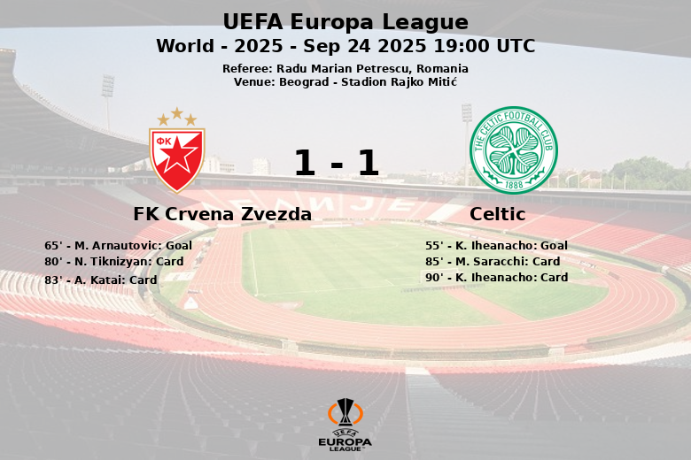 Belgrado, Sérvia – O Estádio Rajko Mitić foi palco de um emocionante encontro entre o Estrela Vermelha de Belgrado e o Celtic de Glasgow, que culminou em um empate. A partida, correspondente à primeira rodada da fase de grupos da UEFA Europa League, foi disputada sob o olhar atento do árbitro romeno Radu Marian Petrescu.