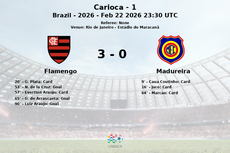 Rio de Janeiro, Brasil – O Flamengo venceu o Madureira com autoridade no Estádio do Maracanã, em partida válida pela semifinal do Carioca – 1 da temporada de 2026. A equipe da casa controlou o jogo desde o início, evidenciado por uma posse de bola esmagadora de 67%.