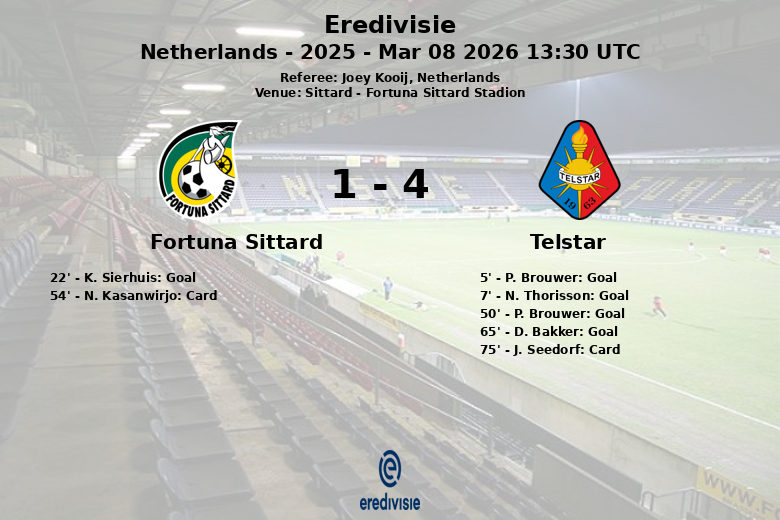 Sittard, Países Baixos – Em uma partida realizada no Fortuna Sittard Stadion, o Telstar garantiu uma vitória retumbante sobre o Fortuna Sittard. O jogo, correspondente à 26ª jornada da Eredivisie, presenciou um início avassalador por parte do Telstar.