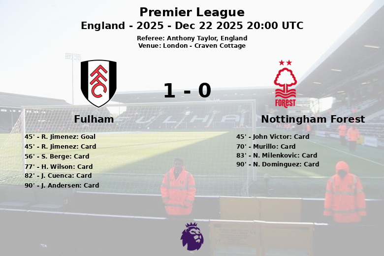 Fulham vs Nottingham Forest Dec 22 2025 20:00 UTC