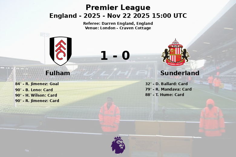 O único gol da partida aconteceu aos 84 minutos, quando Raul Jimenez encontrou o fundo da rede, assistido por Samuel Chukwueze. Apesar dos esforços do Sunderland para empatar, o Fulham manteve a liderança até o apito final. O árbitro Darren England distribuiu vários cartões amarelos para ambos os lados, refletindo a intensidade da partida.