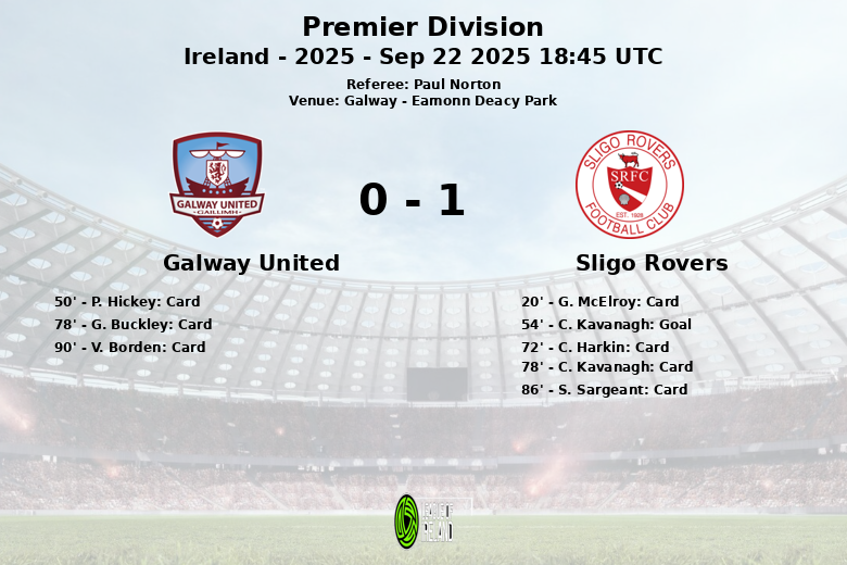 Embora o Galway United tenha tentado reverter o resultado com um número maior de chutes (22 contra 13 do Sligo Rovers), apenas quatro deles foram no alvo, demonstrando a solidez defensiva da equipe visitante. O Sligo Rovers, com uma defesa organizada e capitalizando em sua oportunidade de gol, levou os três pontos em uma partida disputada. O árbitro Paul Norton teve uma tarde agitada distribuindo um total de 6 cartões amarelos.