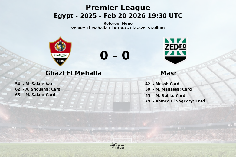 A partida disputada em El Mahalla El Kubra entre Ghazl El Mehalla e Masr, correspondente à 18ª rodada da Premier League egípcia, terminou em um empate sem gols em um jogo marcado por intensidade e interrupções.