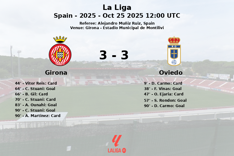 Girona, Espanha – Num jogo cheio de emoções e reviravoltas, o Girona garantiu a vitória contra o Oviedo no Estádio Municipal de Montilivi, num jogo correspondente à décima jornada de La Liga. O jogo, disputado em 25 de outubro de 2025, foi caracterizado pelo seu ritmo frenético e ataques constantes a ambas as balizas.