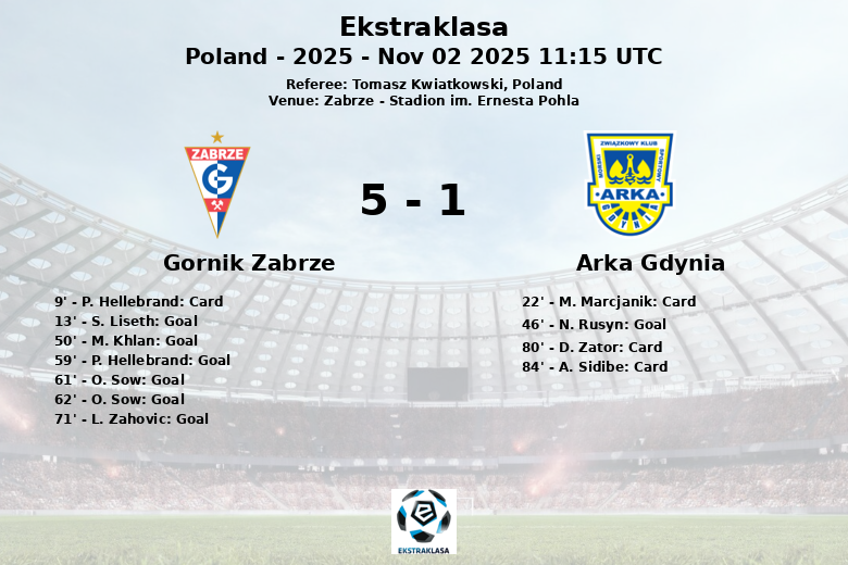 Gornik Zabrze vs Arka Gdynia Nov 02 2025 11:15 UTC
