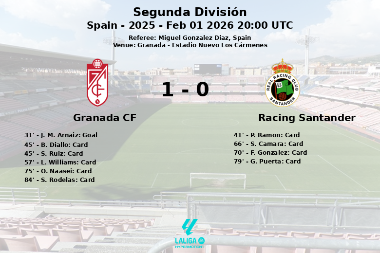 Granada, Espanha – O Granada CF saiu vitorioso contra o Racing Santander em um jogo marcado pela intensidade e um alto número de cartões. A partida, correspondente à jornada 24 da Segunda División, disputada no Estádio Nuevo Los Cármenes, terminou com uma vitória para a equipe da casa.