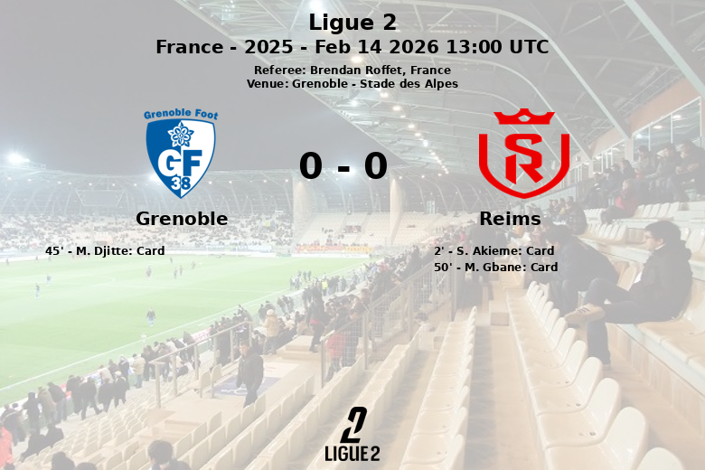 A partida, correspondente à 23ª rodada da temporada de 2025, foi marcada pela intensidade no meio-campo, refletida nas 15 faltas cometidas pelo Grenoble e nas 12 pelo Reims. O árbitro Brendan Roffet distribuiu um cartão amarelo para um jogador do Grenoble e dois para jogadores do Reims. O Reims conquistou 12 escanteios, enquanto o Grenoble teve apenas 2.