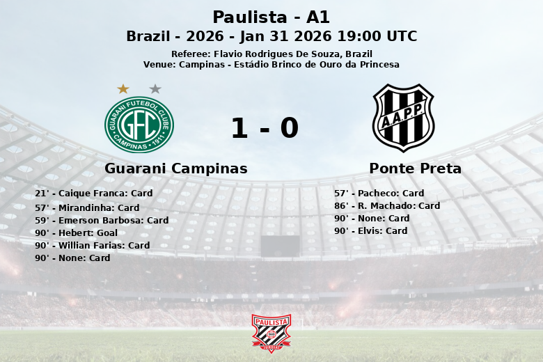Quando parecia que a Ponte Preta levaria a vitória, Hebert, aos 90 minutos, marcou um gol crucial para o Guarani Campinas, arrancando um valioso empate que fez vibrar a torcida local.