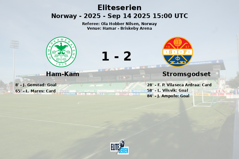 A tensão permaneceu até o final, mas o Strømsgodset conseguiu selar a vitória aos 84 minutos com um gol de J. Ampofo, assistido por H. Stengel. A partida foi disputada com intensidade, refletida nas 12 faltas cometidas pelo Ham-Kam e nas 9 do Strømsgodset, resultando em um cartão amarelo para cada equipe.