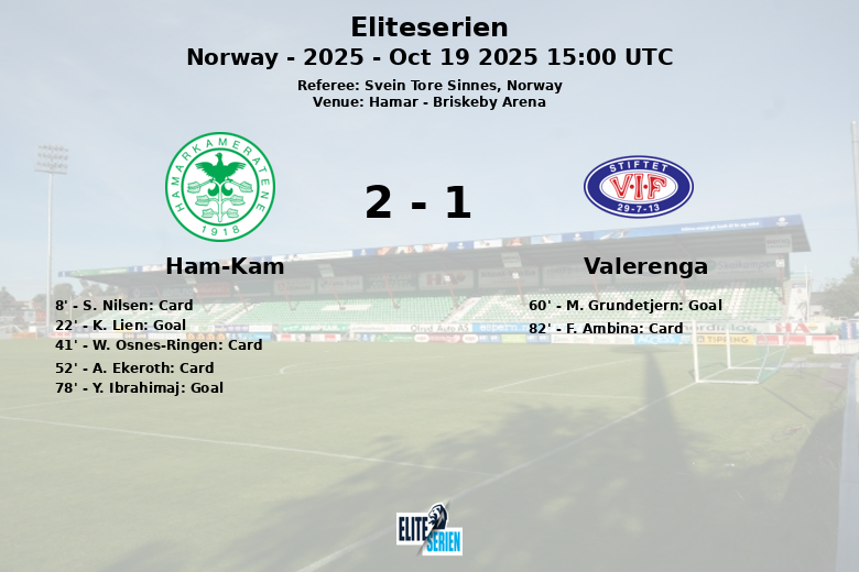 Em um confronto disputado no Briskeby Arena em Hamar, o Ham-Kam conseguiu superar o Valerenga com um placar de 2 a 1 em um jogo correspondente à 25ª rodada da Eliteserien norueguesa.