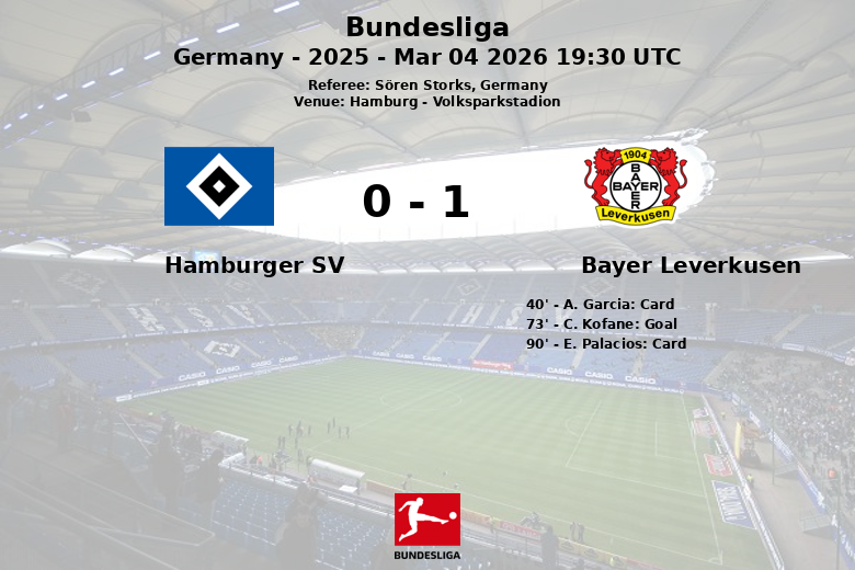 Hamburgo, Alemanha – Em uma partida realizada no Volksparkstadion, o Bayer Leverkusen conseguiu garantir uma vitória contra o Hamburger SV. Apesar de um primeiro tempo sem gols, o Bayer Leverkusen dominou a posse de bola com 63% em comparação com os 37% do Hamburgo. Esse domínio se materializou aos 73 minutos com um gol de C. Kofane, assistido por I. Maza, inclinando a balança a favor do Leverkusen.