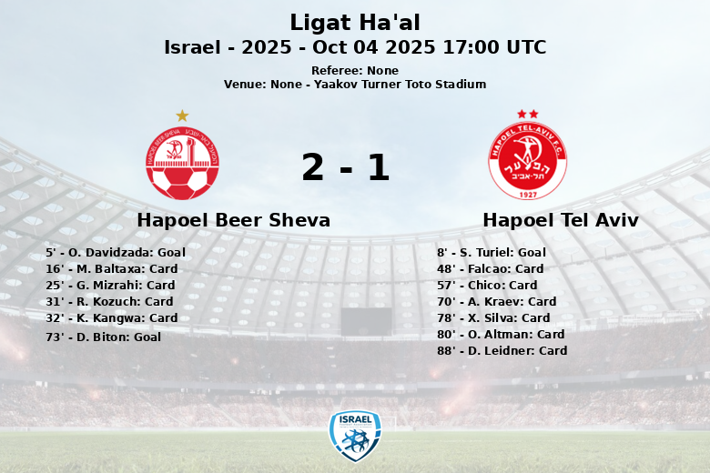 O Estádio Yaakov Turner Toto foi palco de uma partida disputada entre Hapoel Beer Sheva e Hapoel Tel Aviv, válida pela sexta rodada da temporada regular da Ligat Ha’Al. O encontro, realizado em 4 de outubro de 2025, terminou em um empate que deixou os torcedores à beira de seus assentos.