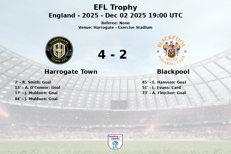 No segundo tempo, o Blackpool tentou reagir, e A. Fletcher marcou aos 73 minutos, aproximando sua equipe no placar. No entanto, o Harrogate Town provou ser uma equipe sólida e determinada. J. Muldoon marcou novamente aos 84 minutos, desta vez assistido por B. Morris, selando a vitória para a equipe da casa.