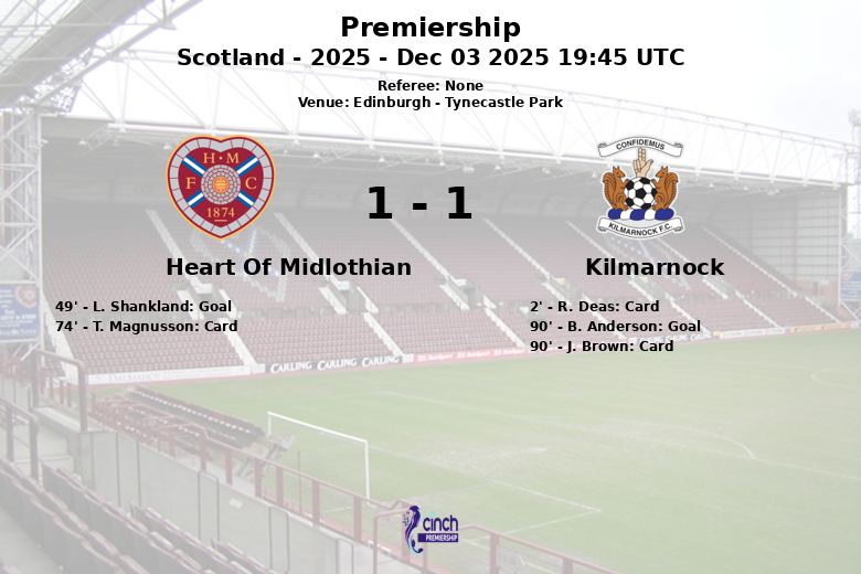 Heart Of Midlothian vs Kilmarnock Dec 03 2025 19:45 UTC