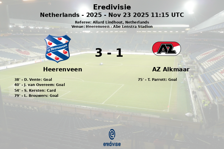 O placar foi aberto aos 38 minutos, quando D. Vente, com assistência de L. Brouwers, colocou o Heerenveen na frente. Apenas dois minutos depois, J. van Overeem ampliou a vantagem, assistido por O. Braude, solidificando o domínio da equipe da casa antes do intervalo.