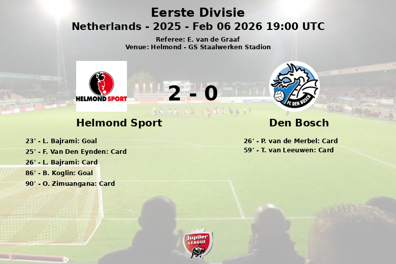 Helmond, Países Baixos – Em partida válida pela 26ª rodada da Eerste Divisie, o Helmond Sport conquistou uma importante vitória em casa contra o Den Bosch. O confronto, realizado no GS Staalwerken Stadion, foi marcado por um ritmo intenso e diversas advertências.