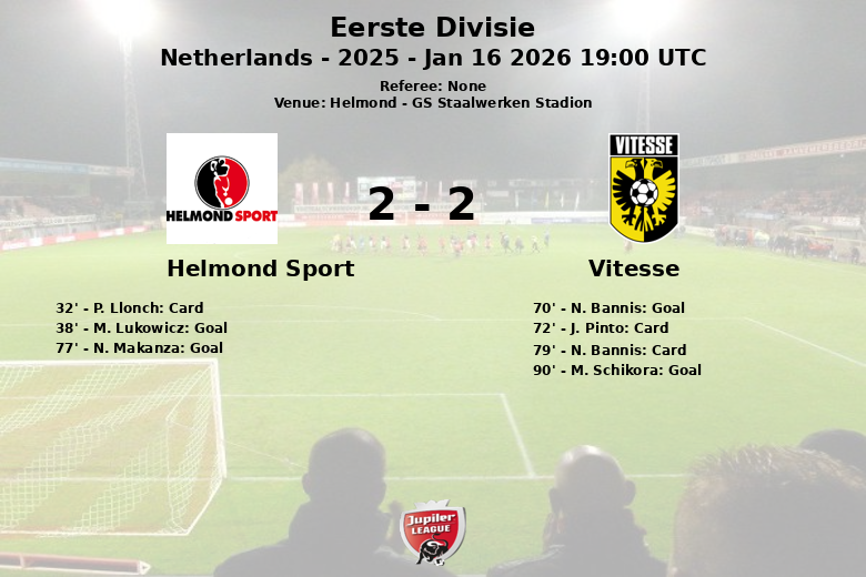 Helmond, Holanda – Em uma partida repleta de emoções, realizada no GS Staalwerken Stadion, Helmond Sport e Vitesse empataram, mantendo os torcedores à beira de seus assentos. O jogo, válido pela 23ª rodada da Eerste Divisie, temporada 2025, terminou com o placar de dois a dois.