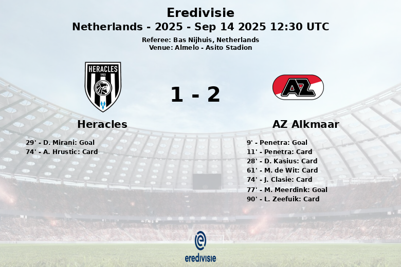 Almelo, Países Baixos – Em um jogo disputado no Asito Stadion, o AZ Alkmaar derrotou o Heracles em uma partida vibrante correspondente à quinta rodada da Eredivisie. A partida, arbitrada por Bas Nijhuis, foi marcada pela intensidade e inúmeras oportunidades de gol para ambos os lados.