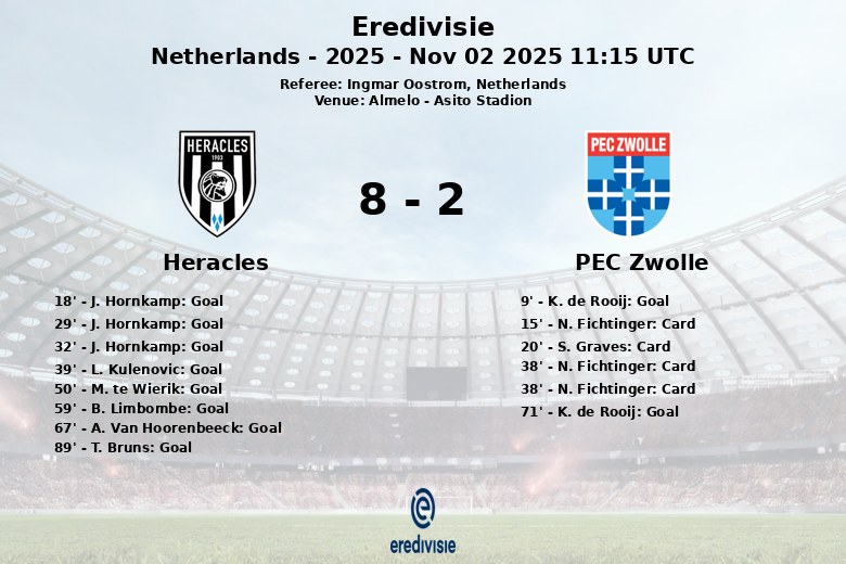 Heracles Esmaga o PEC Zwolle em Jogo Cheio de Gols e com Expulsão