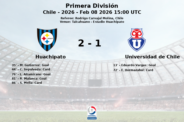 Talcahuano, Chile – Em um jogo emocionante disputado no Estádio Huachipato, o Huachipato superou o Universidad de Chile com um placar de 2 a 1. A partida, válida pela segunda rodada da Primeira Divisão de 2026, deixou os torcedores locais celebrando uma importante vitória.