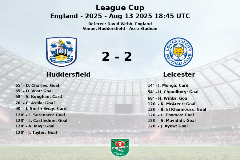Huddersfield, Inglaterra – Uma partida dramática da primeira rodada da League Cup no Accu Stadium entre Huddersfield e Leicester terminou empatada após uma prorrogação de tirar o fôlego. A partida, apitada por David Webb, foi marcada pela intensidade desde o início, com ambas as equipes buscando impor seu jogo.