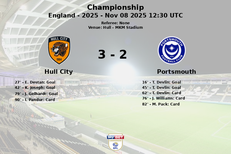 Hull, Inglaterra – O MKM Stadium testemunhou um vibrante jogo do Championship entre Hull City e Portsmouth, culminando em uma vitória por 3 a 2 para o time da casa. O Hull City dominou a posse de bola com 57%, embora o Portsmouth tenha se mostrado incisivo no ataque.