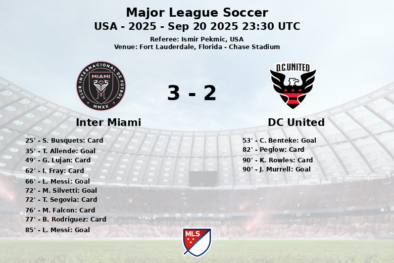 A partida foi marcada por um alto número de faltas e cartões amarelos, com seis para o Inter Miami e dois para o DC United. O Inter Miami mostrou maior contundência ofensiva, refletida em seus 17 chutes totais, dos quais sete foram ao gol, em comparação com os nove chutes do DC United, com cinco no alvo. O domínio do Inter Miami na posse de bola e a eficácia de seus ataques foram decisivos para garantir a vitória nesta emocionante partida da Major League Soccer.