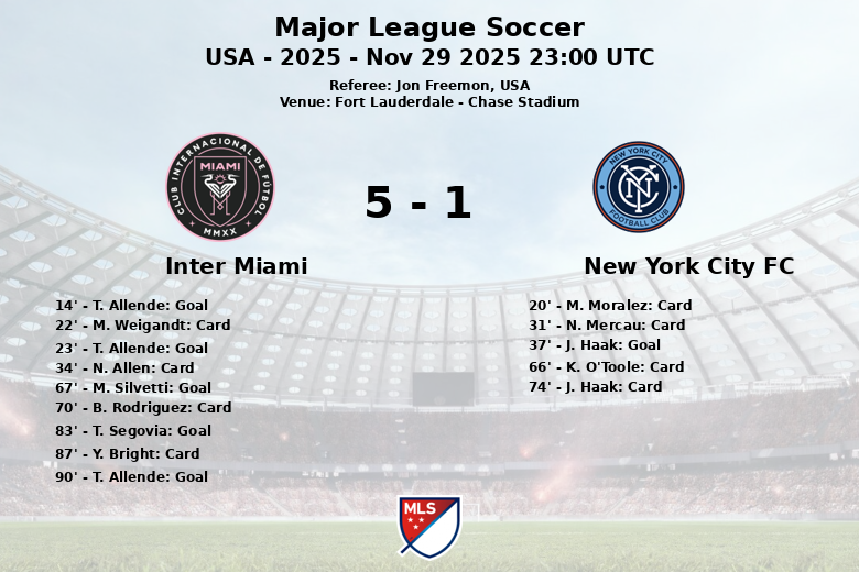 Fort Lauderdale testemunhou uma vitória retumbante do Inter Miami sobre o New York City FC nas semifinais da Major League Soccer. Em uma partida realizada no Chase Stadium, o Inter Miami afirmou seu domínio com um placar final de 5 a 1.