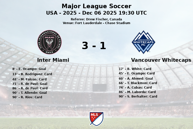 O Inter Miami saiu vitorioso contra o Vancouver Whitecaps em uma partida eletrizante no Chase Stadium, em Fort Lauderdale. O jogo, válido pela final da Major League Soccer 2025, viu o Inter Miami com menos posse de bola (35% contra 65% do Vancouver), mas mais eficaz na frente do gol.