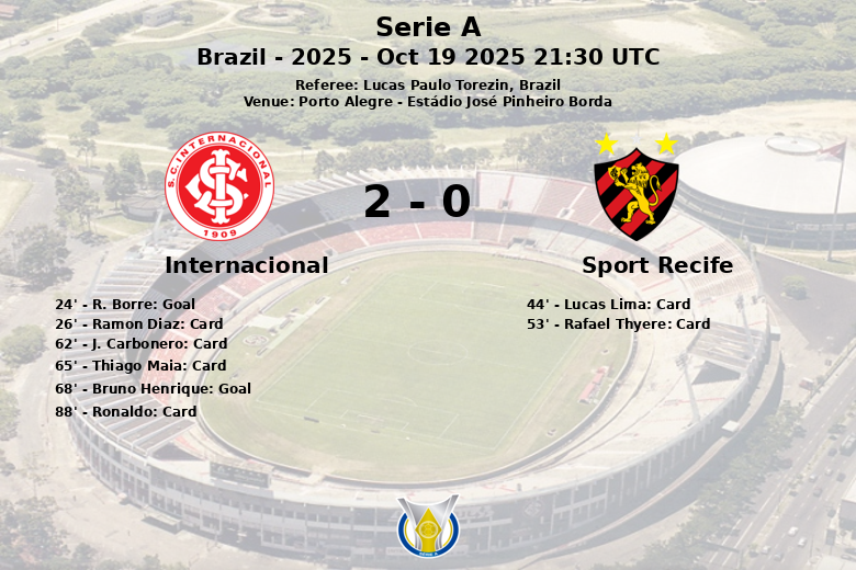 Porto Alegre foi palco de uma partida disputada no Estádio José Pinheiro Borda, onde o Internacional superou o Sport Recife. Apesar da maior posse de bola do Sport Recife (65%), o Internacional conseguiu concretizar suas oportunidades.