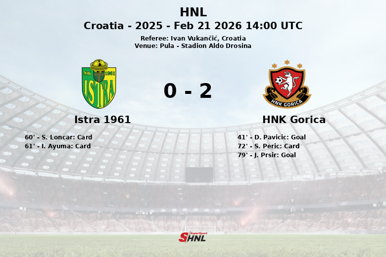 Istra 1961 vs HNK Gorica Feb 21 2026 14:00 UTC