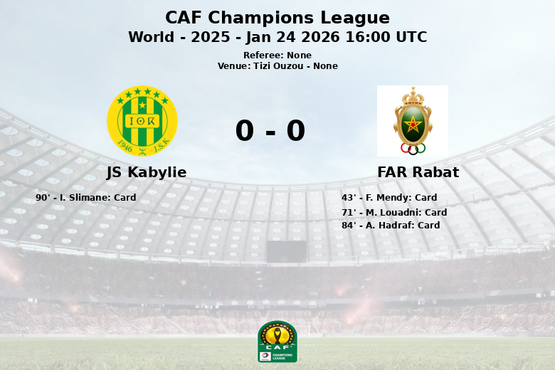 Tizi Ouzou foi o palco de um encontro disputado na Liga dos Campeões da CAF, onde o JS Kabylie e o FAR Rabat empataram sem golos. A partida, correspondente à terceira jornada da fase regular, caracterizou-se pela intensidade e pela luta no meio-campo.