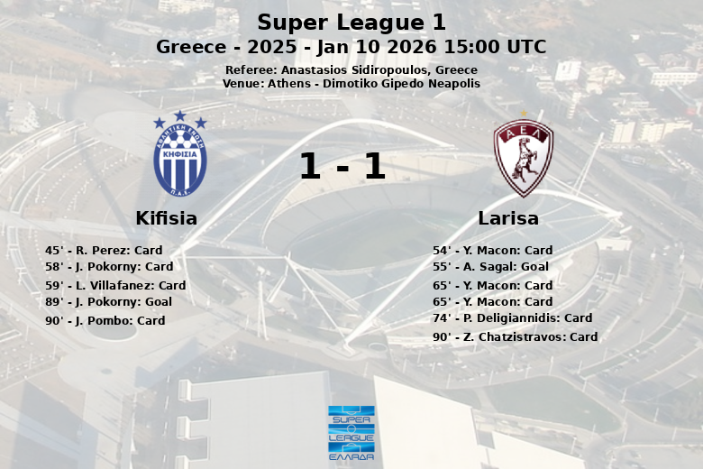 Apesar dos 22 chutes do Kifisia, apenas 6 foram no alvo. O Larisa, por sua vez, realizou 13 chutes, com 7 direcionados ao gol. O encontro, correspondente à 16ª rodada da Super League 1, temporada 2025, deixou um gosto agridoce para ambas as equipes.
