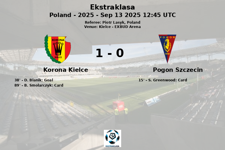 O único gol da partida aconteceu aos 38 minutos, marcado por D. Blanik, que aproveitou uma excelente jogada para vencer o goleiro do Pogon Szczecin. Apesar de ter menos posse de bola (45% contra 55% do Pogon), o Korona Kielce soube aproveitar suas oportunidades, demonstrando maior eficácia em frente ao gol adversário.