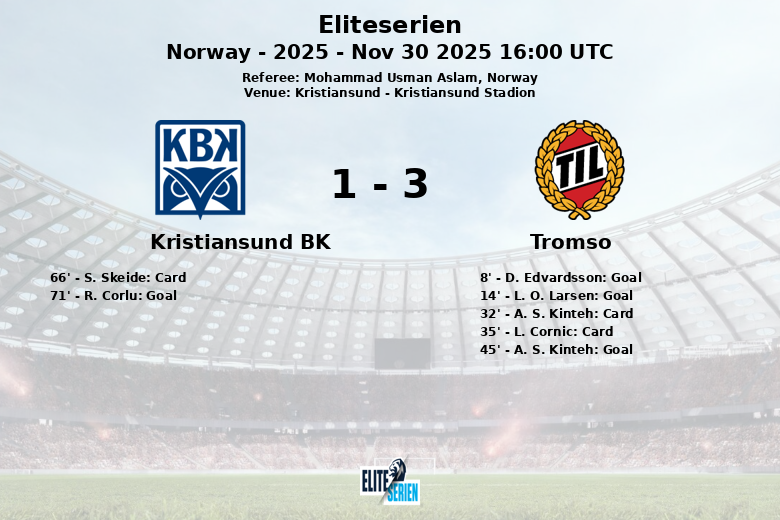 Kristiansund, Noruega – Tromsø garantiu uma vitória retumbante em sua visita ao Kristiansund Stadion no domingo, em partida válida pela 30ª rodada da Eliteserien 2025. Desde o apito inicial, Tromsø demonstrou sua superioridade com um jogo ofensivo que rapidamente se traduziu em gols.