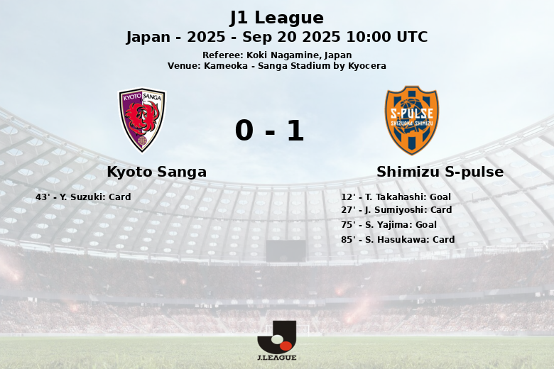 Kameoka, Japão – Em uma partida realizada no Sanga Stadium by Kyocera, o Shimizu S-pulse derrotou o Kyoto Sanga com um placar de 2 a 0, correspondente à 30ª rodada da J1 League. O jogo, apitado por Koki Nagamine, foi marcado pela intensidade no meio-campo e pelas oportunidades criadas por ambas as equipes.