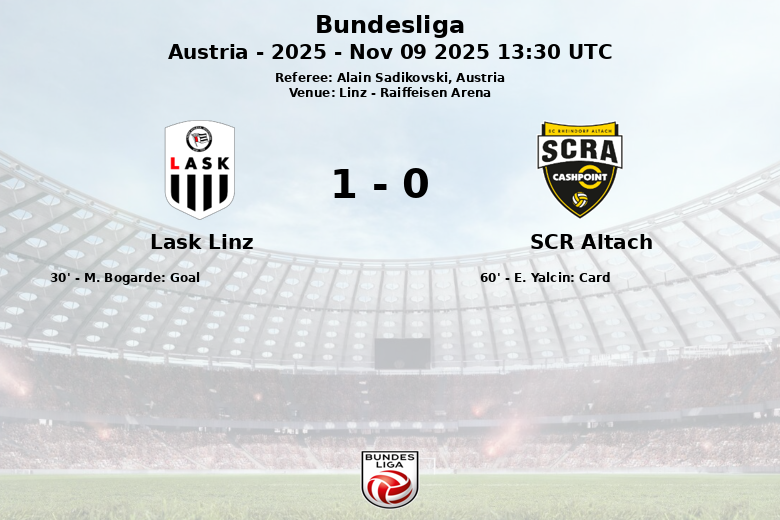 Linz, Áustria – O Lask Linz conquistou uma vitória apertada sobre o SCR Altach em uma partida válida pela 13ª rodada da Bundesliga Austríaca, disputada na Raiffeisen Arena. O único gol da partida aconteceu aos 30 minutos, marcado por M. Bogarde, em uma jogada sem assistência.