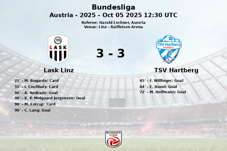 Linz, Áustria – Em um encontro disputado na Raiffeisen Arena, o LASK Linz conseguiu uma reviravolta espetacular contra o TSV Hartberg nos minutos finais, culminando em uma partida carregada de tensão e alternativas. Apesar de dominar a posse de bola com 65%, o LASK Linz foi surpreendido por um TSV Hartberg que aproveitou suas oportunidades.