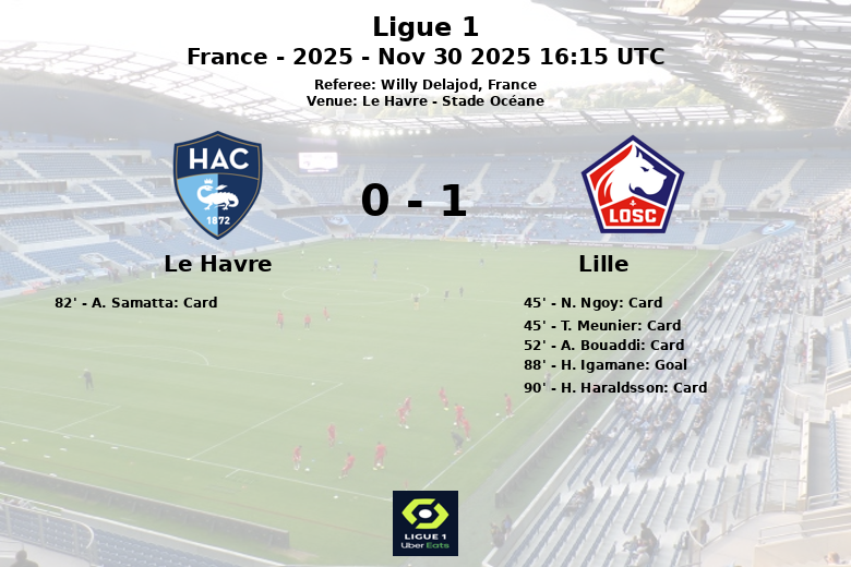 Le Havre vs Lille Nov 30 2025 16:15 UTC