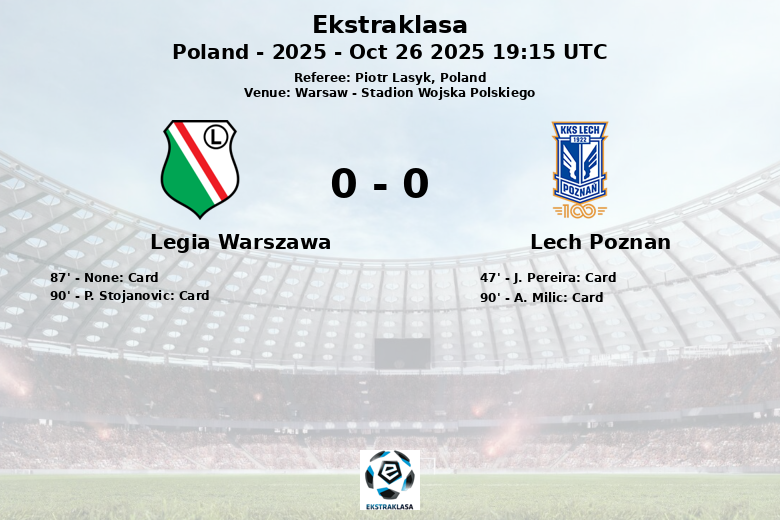 Varsóvia testemunhou um encontro intenso, mas sem gols, entre o Legia Warszawa e o Lech Poznan no Stadion Wojska Polskiego. A partida, válida pela 13ª rodada da Ekstraklasa, terminou com um empate em 0-0.