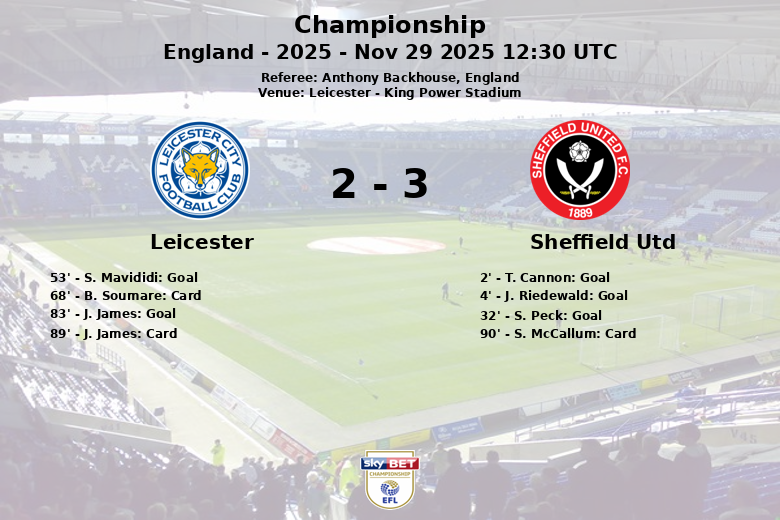 Leicester, Inglaterra – Em um jogo que desafiou todas as expectativas, o Sheffield United garantiu uma vitória impressionante de 3 a 2 sobre o Leicester City em seu próprio terreno, o King Power Stadium. A partida, correspondente à 18ª rodada do Championship, testemunhou um início fulminante do Sheffield United, que abriu o placar em apenas quatro minutos com gols de T. Cannon e J. Riedewald, ambos assistidos por um brilhante C. O’Hare. S. Peck ampliou a vantagem dos visitantes aos 32 minutos, deixando o Leicester City atordoado.