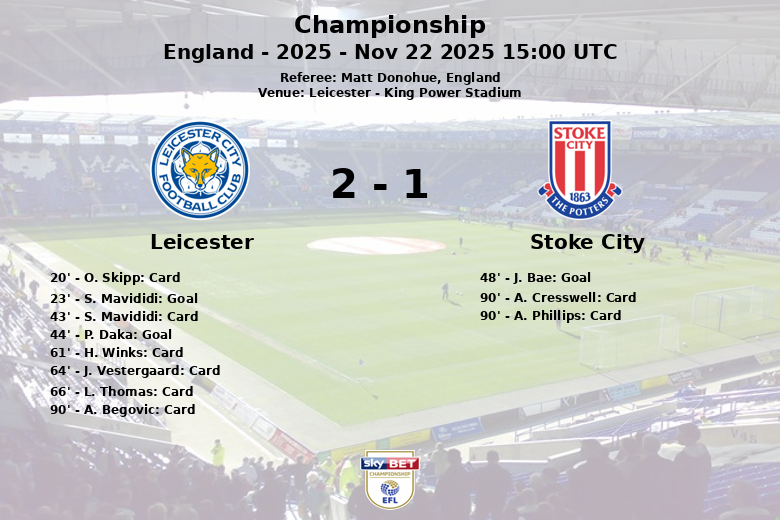No segundo tempo, o Stoke City reagiu rapidamente e diminuiu o placar através de J. Bae aos 48 minutos, assistido por A. Phillips, injetando emoção na partida. Apesar dos esforços do Stoke City, o Leicester conseguiu manter a vantagem e garantir a vitória.