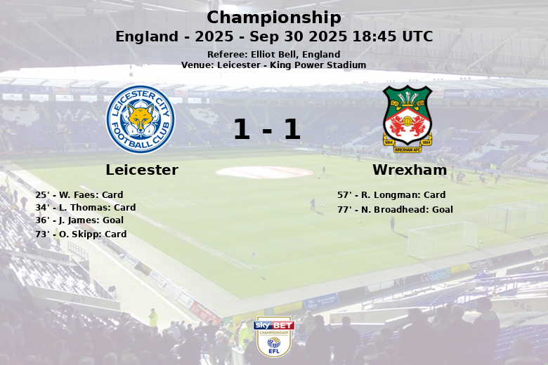Leicester vs Wrexham Sep 30 2025 18:45 UTC