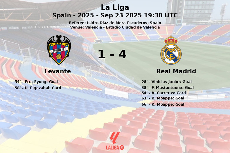 No entanto, a alegria do Levante foi de curta duração, pois K. Mbappé, em uma demonstração de seu talento, marcou dois gols. O primeiro, de pênalti aos 63 minutos, e o segundo, aos 66 minutos, após uma brilhante assistência de A. Guler.