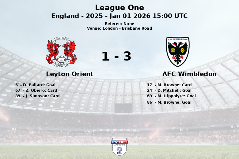 Londres, Inglaterra – Uma partida cheia de alternativas em Brisbane Road culminou com um empate entre Leyton Orient e AFC Wimbledon na jornada 24 da League One. Leyton Orient dominou a posse de bola com 55%, mas foi o AFC Wimbledon quem gerou mais perigo no ataque, com 10 chutes no total, 5 deles no alvo.