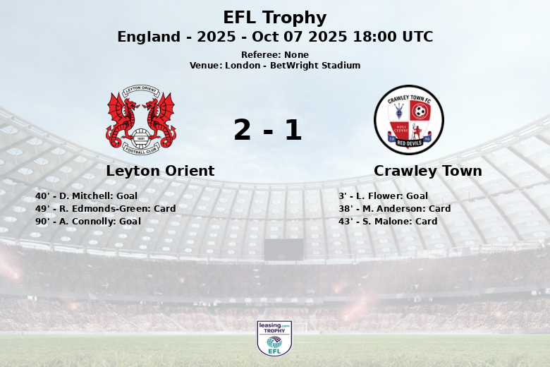 Leyton Orient vs Crawley Town Oct 07 2025 18:00 UTC